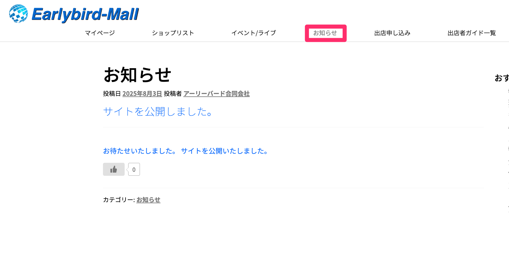 お知らせは運営から会員への皆さまにお知らせする機能です。