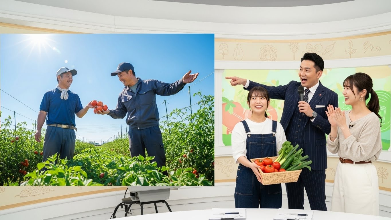 半分がメインのスタジオからクッキングの様子を配信し、半分は生産地から生産者のコメントを同時配信されるようなライブが展開されます。